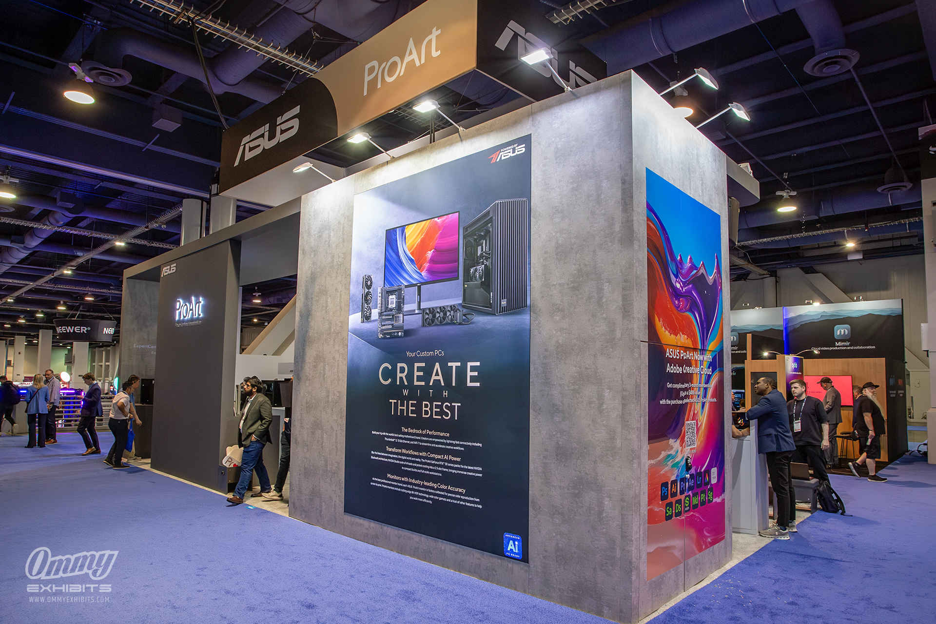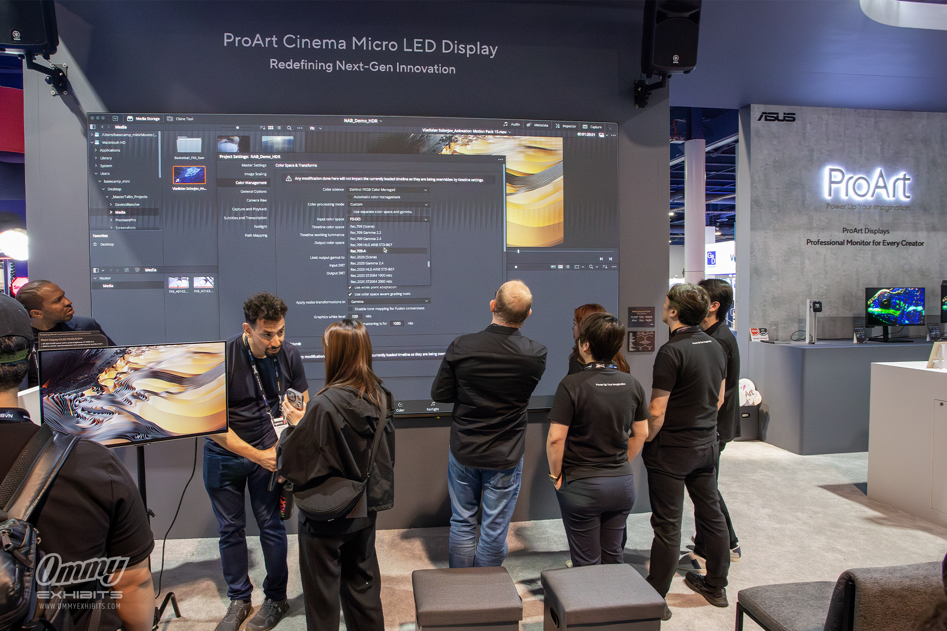 The NAB Show 2025 wrapped up yesterday with our team delivering a spectacular 20’x40′ booth for ASUS that perfectly showcased their cutting-edge technology. The carefully designed space featured dedicated zones for their breathtaking ProArt Cinema Micro LED Displays, allowing industry professionals to experience unprecedented color accuracy and contrast ratios firsthand. Adjacent demonstration stations highlighted ASUS’s Advanced AI PCs, where attendees could interact with intelligent workflow solutions that are transforming content creation and production. Our strategic layout maximized visitor engagement while maintaining a sophisticated aesthetic that aligned perfectly with ASUS’s premium brand positioning, resulting in consistently high traffic throughout the event.
