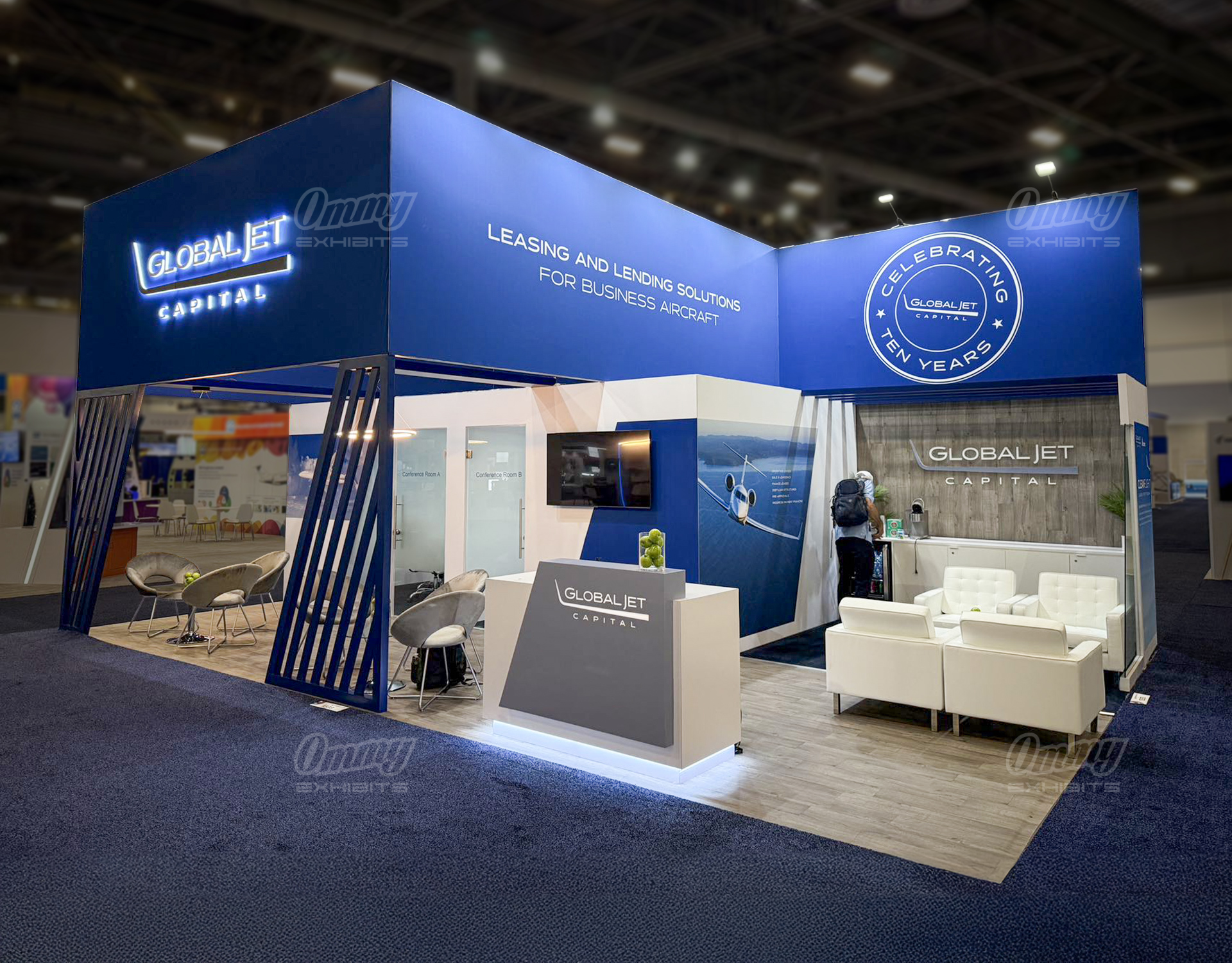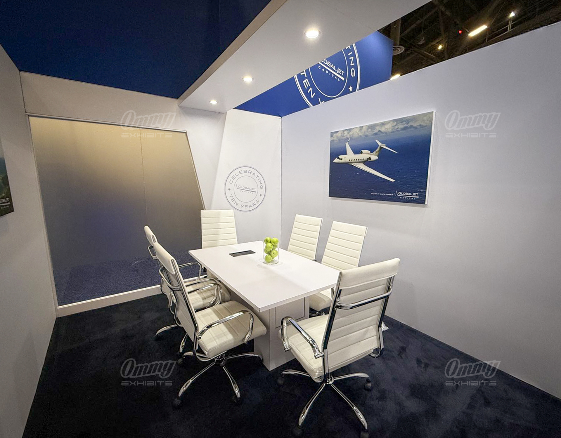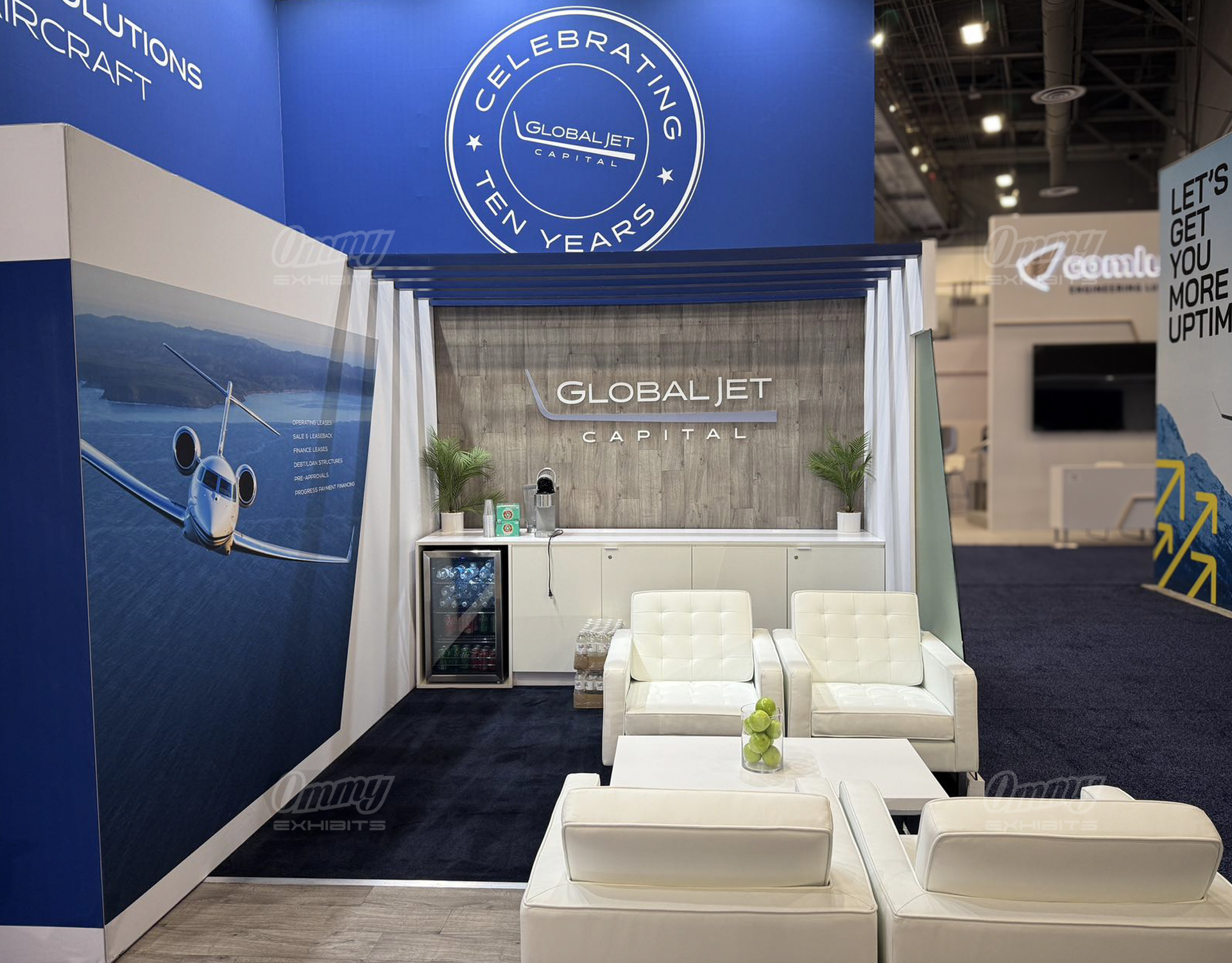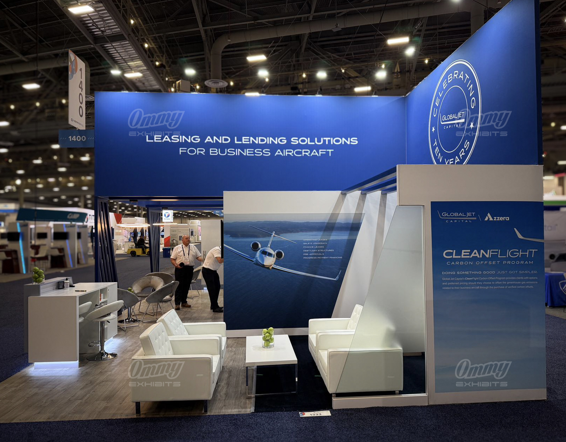 If you missed the NBAA show this year, check out the booths we built for Global Jet Capital and Ipeco! We provide design, fabric, graphics, carpentry, and full build-out.