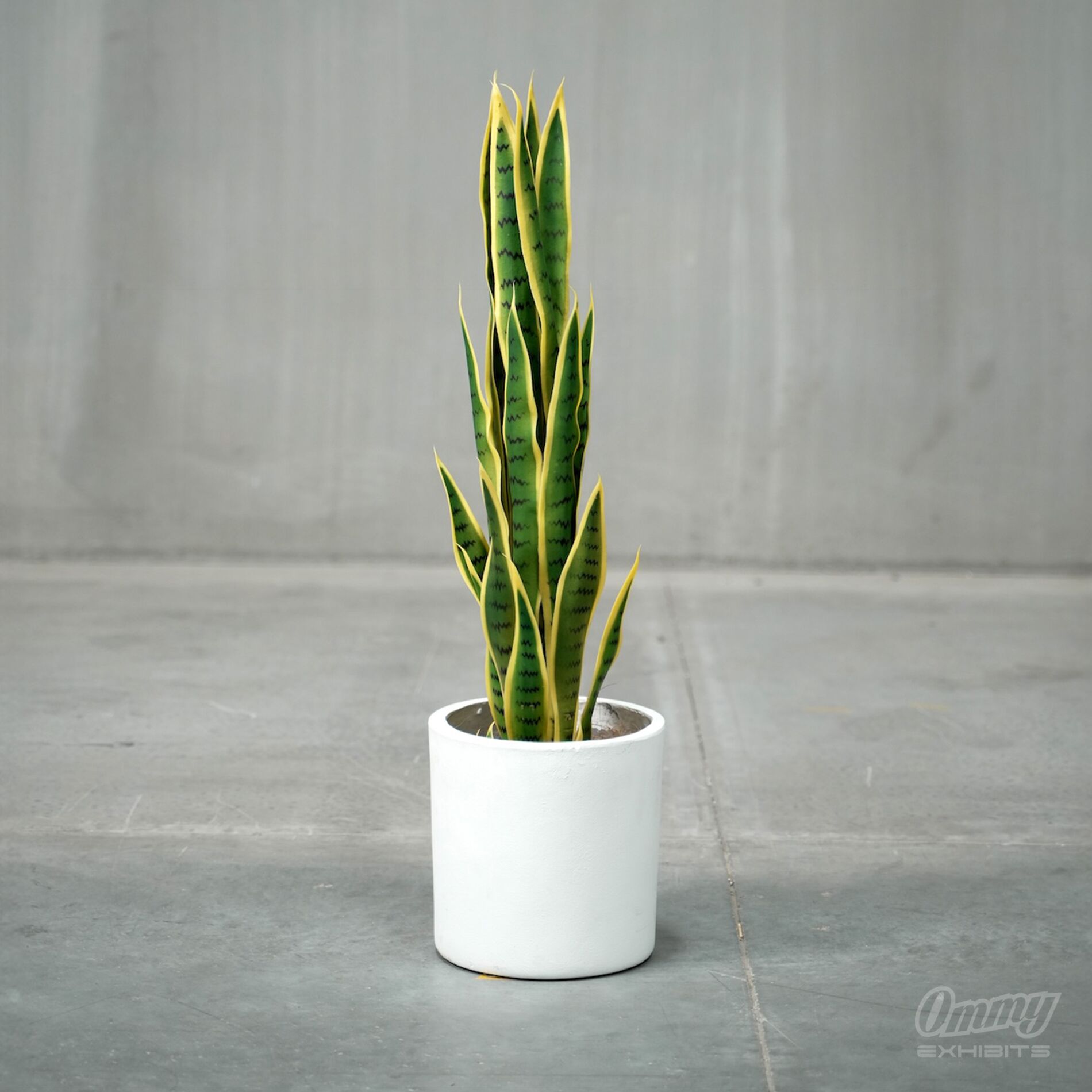 Realistic, potted Snake plant in a white ceramic pot.