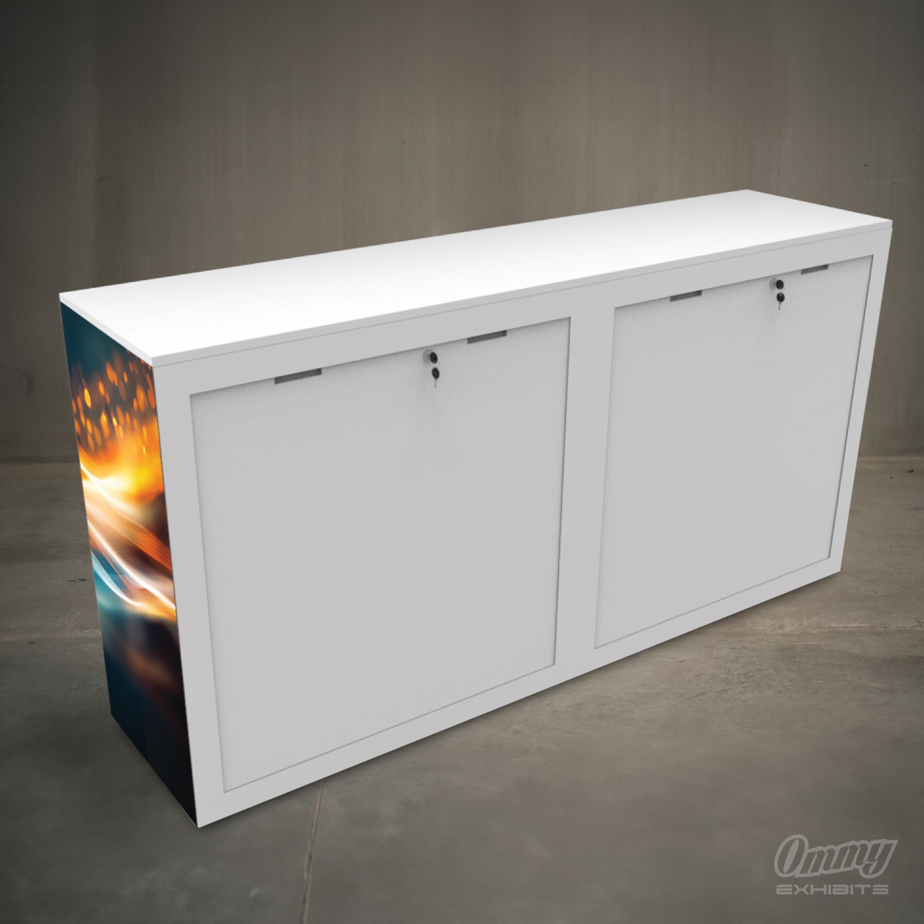 X-Large illuminated cabinet with lock. Includes custom, full-color graphics printed on fabric.