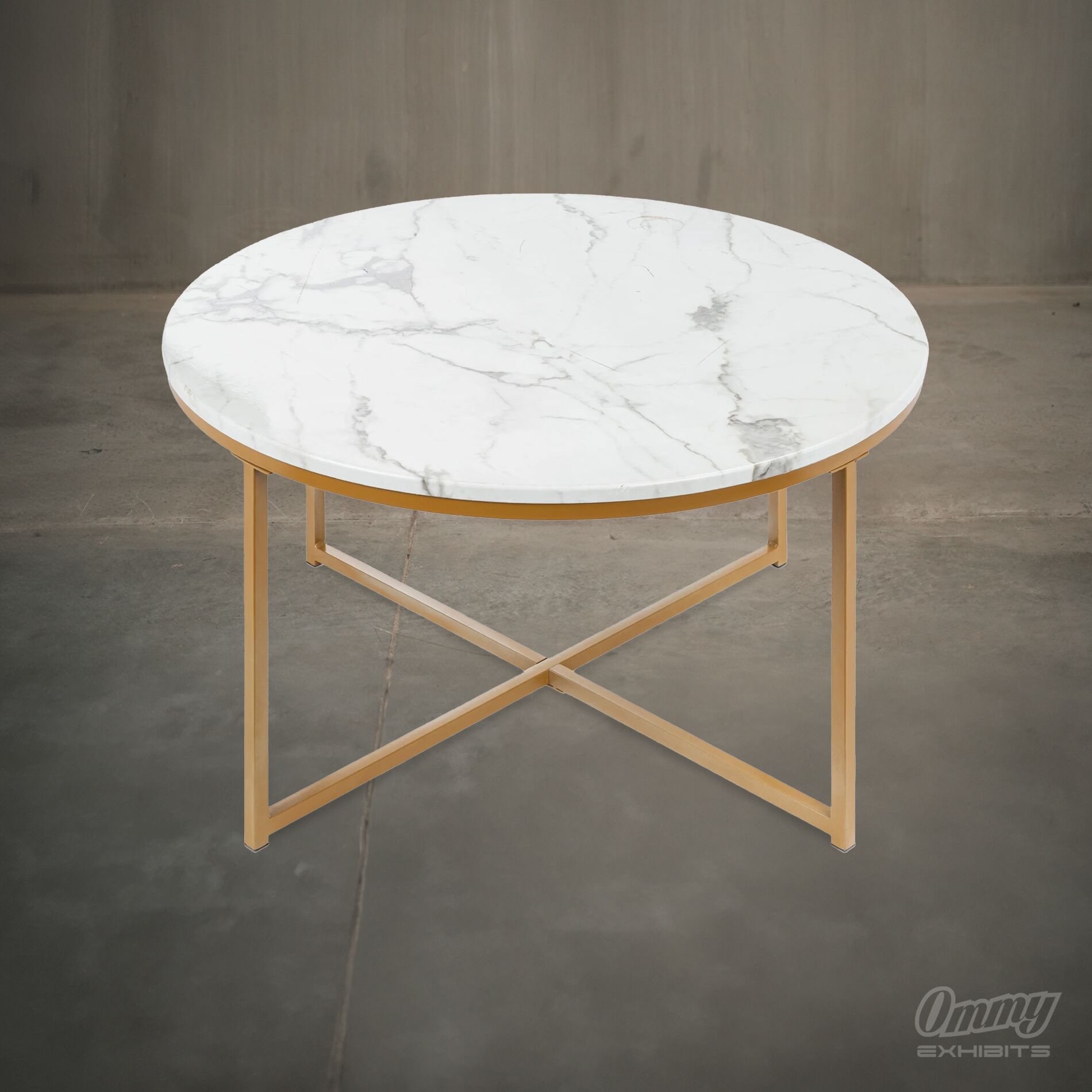 Faux Marble Top Gold Metal Frame Round Coffee Table