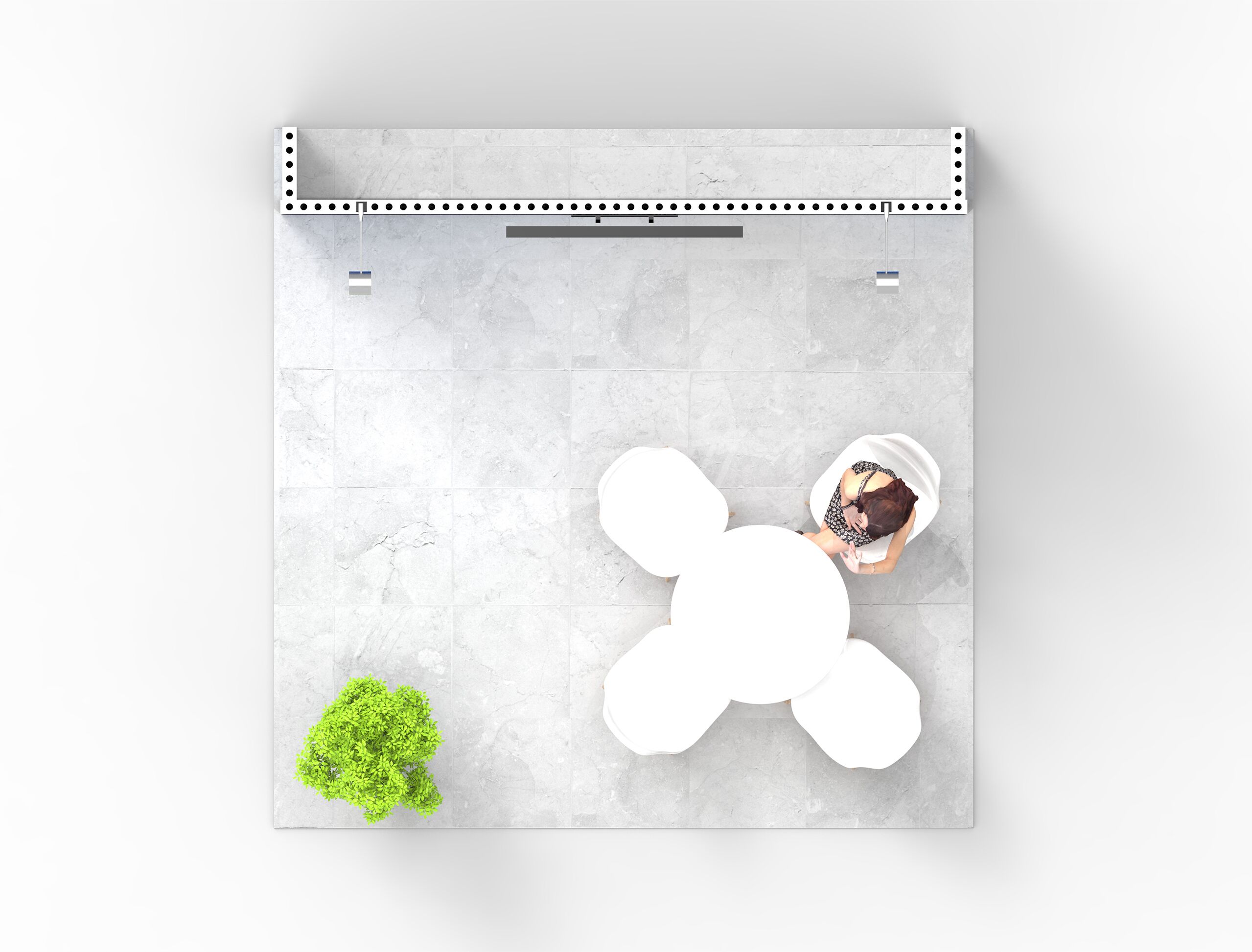 Need a 10×10 exhibit booth rental that feels welcoming? This setup gives you a full-color back wall for your branding, a medium video display to show off your content, and adjustable arm lights to highlight what matters most. The table with four chairs means you can comfortably host small group conversations or demos without feeling cramped. It’s a friendly, functional design that balances professional presentation with a relaxed vibe—perfect for exhibitors who want prospects to actually want to stick around and chat.
